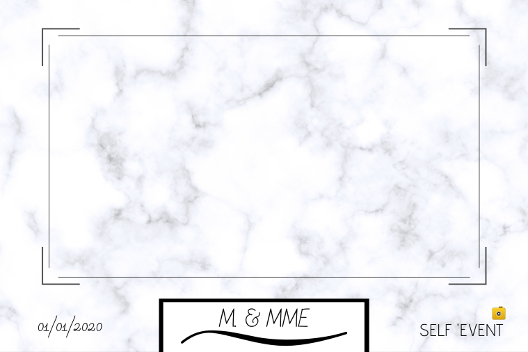 La personnalisation de nos Photobooth pour votre événement inclut l’écran de veille qui défile en cas d’inactivité de la borne photos et les cadres photos (paysage, portrait, bande) qui accompagnent les tirages.