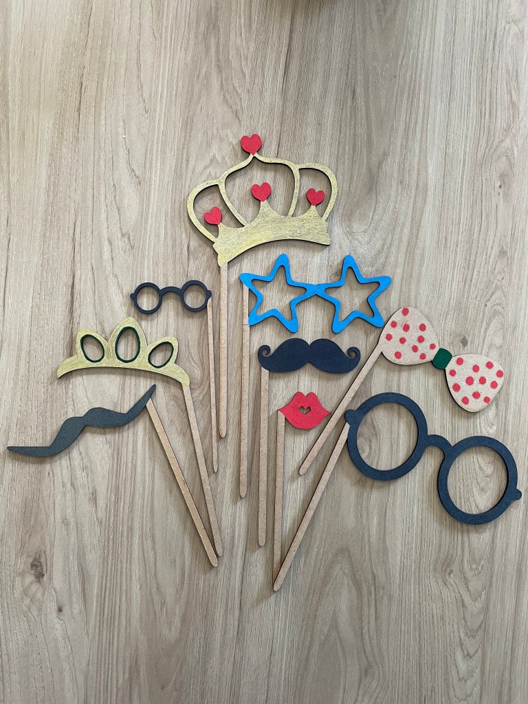Apportez un coté fun à vos photos avec nos accessoires Photobooth fabriqués en bois ! Le lot comprend 9 accessoires différents (lunettes, moustaches, …).